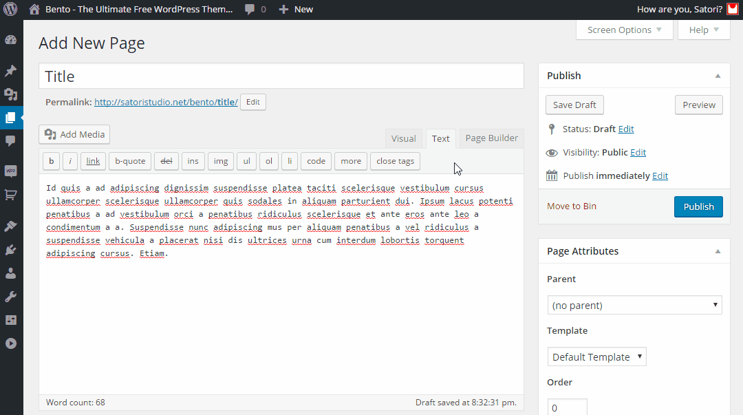 In Bento, you can customize every individual page, post, or product, using a variety of settings available in the editor mode. From adjusting the background color and the title position, to setting SEO parameters, and adding a beautiful image header with action buttons. Try it yourself -